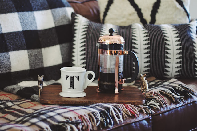 The temperatures have finally started to dip below 60 in the mornings and we've spent many a chilly morning bundled up in bed reading books, a steaming cup of coffee in my hand. Speaking of coffee I've been brewing "pumpkin spice" coffee and then adding "pumpkin spice" creamer and the whole house smells like a giant spicy pumpkin and I couldn't love it more! I've also unpacked all of our winter clothes and accessories but I'm still waiting for the day that we get to wear it all - scarves, hats, gloves and coats! It's my absolute favorite!